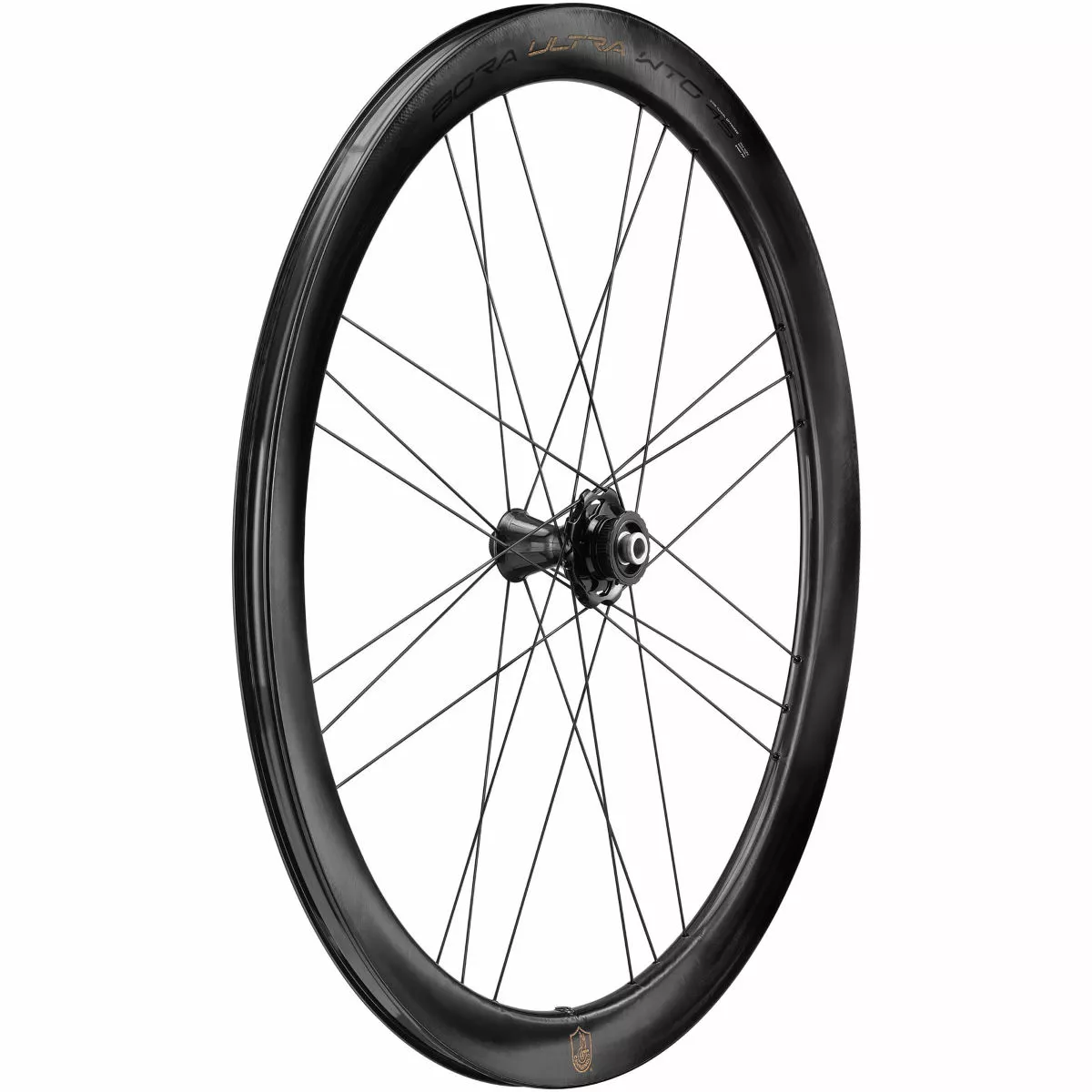 Engineered for the demands of modern road cycling, this wheelset features updated technologies relating to a completely revised manufacturing process for incomparable performance, look, resistance, dimensional precision and the ultimate tyre safe installation and functional matching. Giving riders full control over their performance, this model is equipped with AFS disc brake compatibility for powerful and consistent braking operation wherever their next ride takes them. Another highlight is its self-lock Aero Mo-Mag technology that provides perfect alignment between the spokes and nipples. This not only makes maintenance easier but also reduces stress and boosts longevity. Coming complete with high-quality CULT ceramic bearings and stunning Dark Copper Shaded graphics, the Campagnolo Bora WTO 45 Disc Road Wheelset is designed and researched for the perfect racing machine.