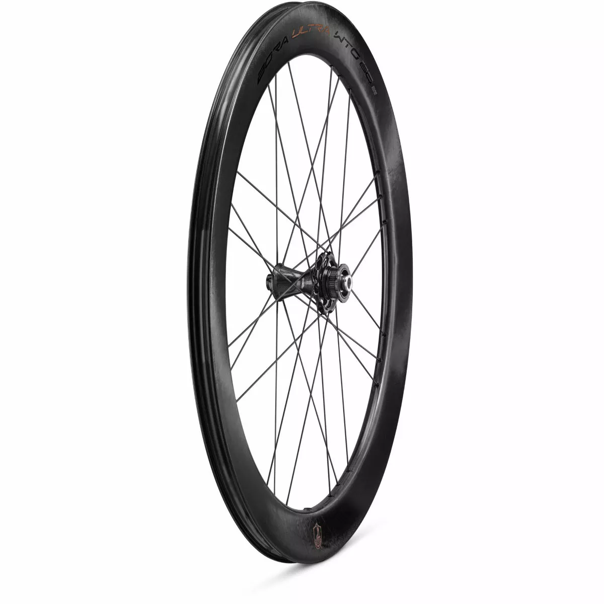 Designed for pure speed, this road bike wheelset features two unidirectional high-strength carbon fibre rims that deliver fantastic stiffness and strength combined with all the best of Campagnolo technology. A wheelset that can transform the output of the most powerful riders into victories, it tips the scale at only 1515g and thanks to its in-house carbon manufacturing it gives riders an exceptional strength to weight ratio when both training and racing. Coming equipped with a 60mm rim profile height, this model’s deep design cuts through the wind and provides excellent aerodynamics. With disc brake compatibility and rim solutions including 2-Way Fit and Aero Mo-Mag technologies as well as 360° improvements, it offers a reduced weight, fast-rolling, higher reactivity, better handling alongside an updated finish with eye-catching graphics that really makes Ultra stand out from the crowd.