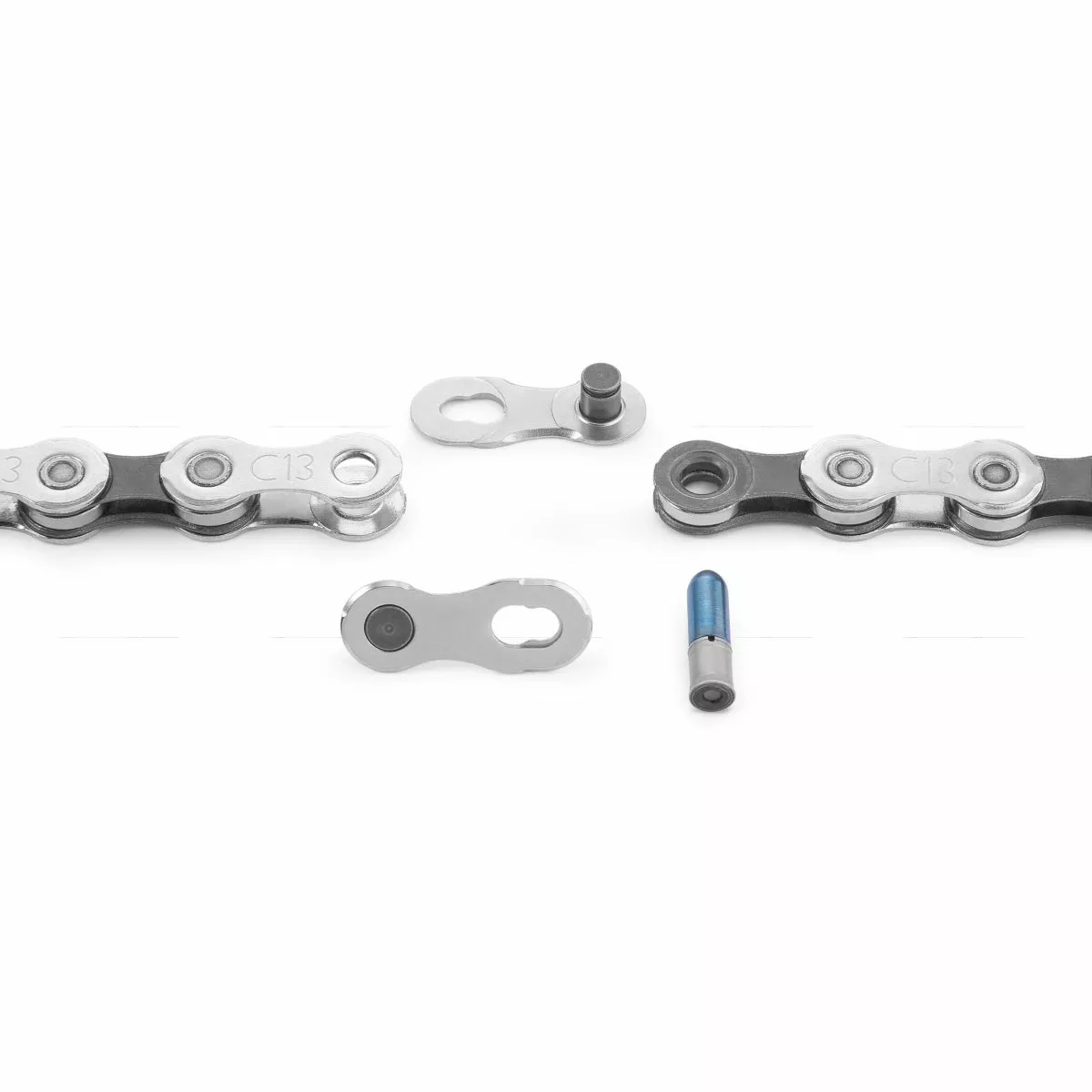 The new Nickel-Teflon treated C13 chain is designed specifically to work efficiently and securely with a narrow-wide 13- sprocket system. Despite being Campagnolo’s narrowest ever chain, it’s also strong, light, durable and amazingly efficient.