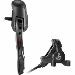 Keeping your ride under control in all road cycling situations, this set combines an Ergopower Super Record 12 Speed Disc Brake controller and a brake caliper for a more ergonomic, more precise, more powerful and easier to maintain set-up. Benefitting from many of Campagnolo’s finest technologies including Vari-Cushion, One lever-One action, AMS Adjustment and an Ultra-Shift System, this model also offers a wide range of features and customisation for fine-tuning your braking and shifting performance.