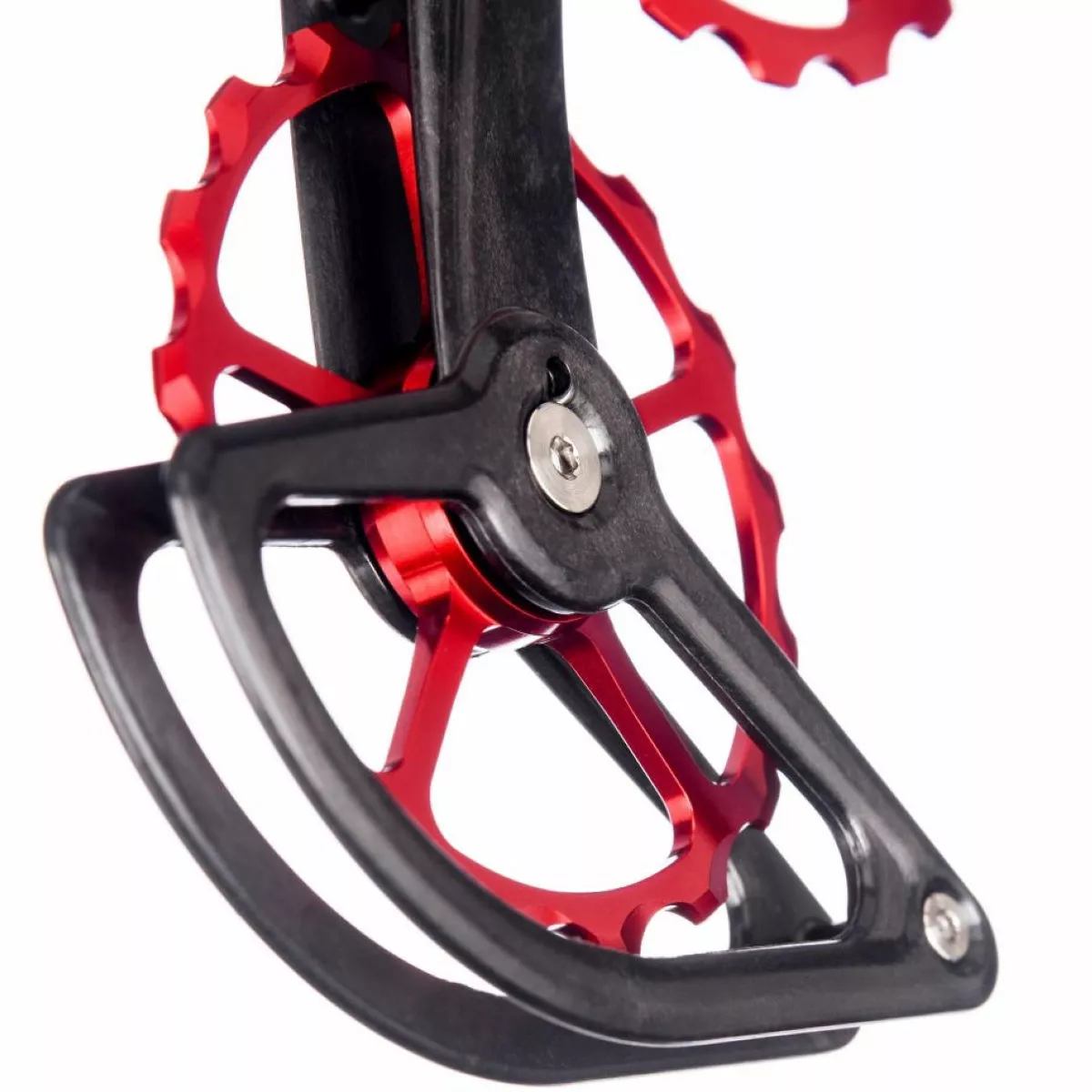 This OSPW System features a set of 17-tooth aluminium Pulley Wheels, available in red and black, housed in a specially designed polyamide (PA) and carbon cage.