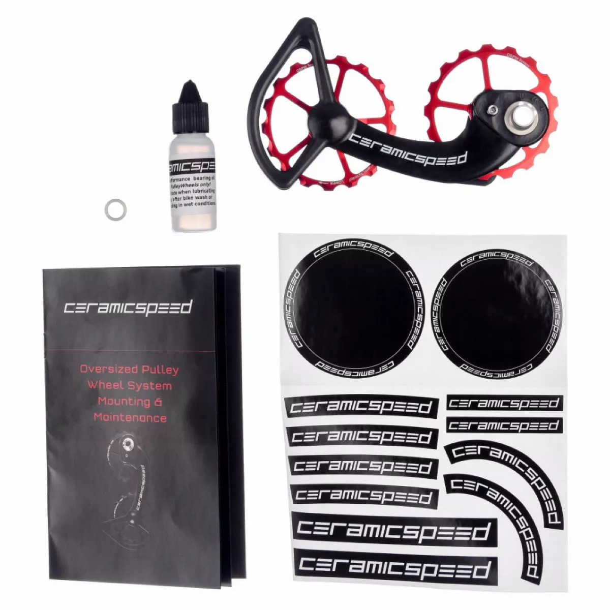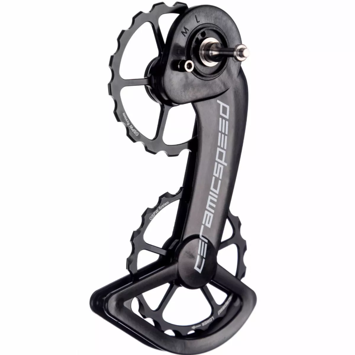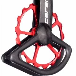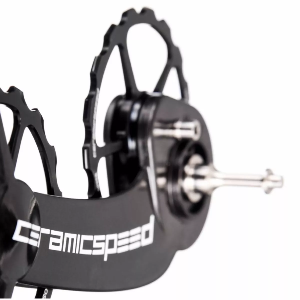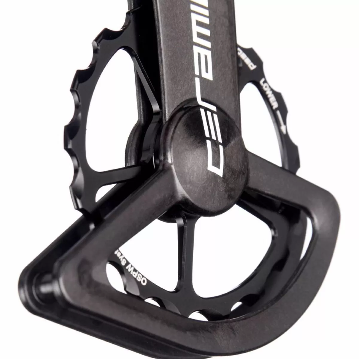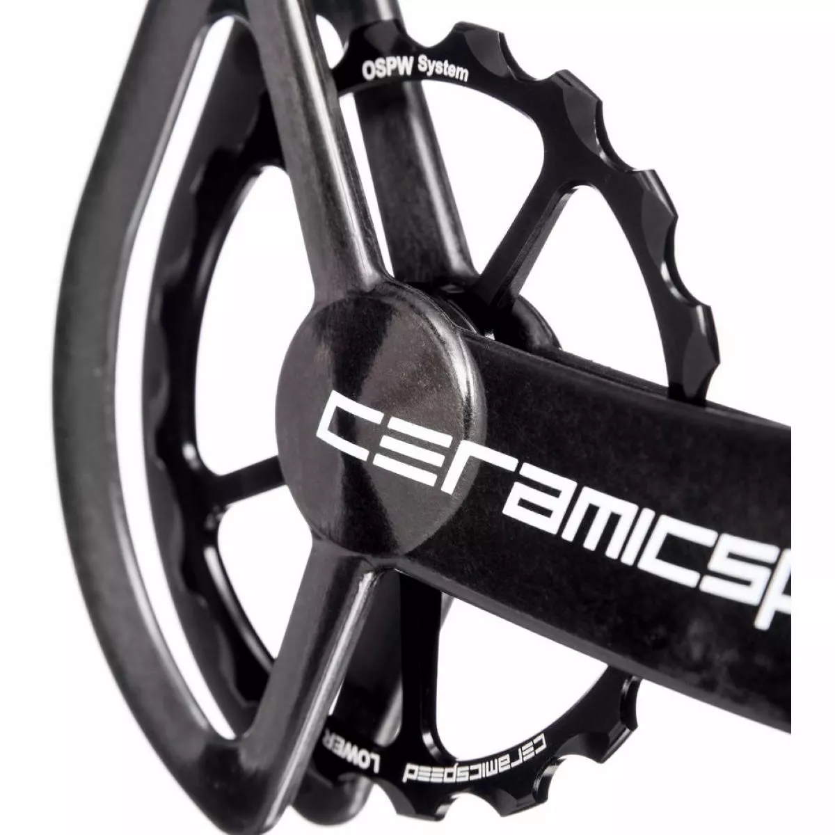 The cage is made from carbon fibre and reinforced PA while the 17-tooth pulley wheels are made from aluminium and mounted with high quality CeramicSpeed coated bearings.