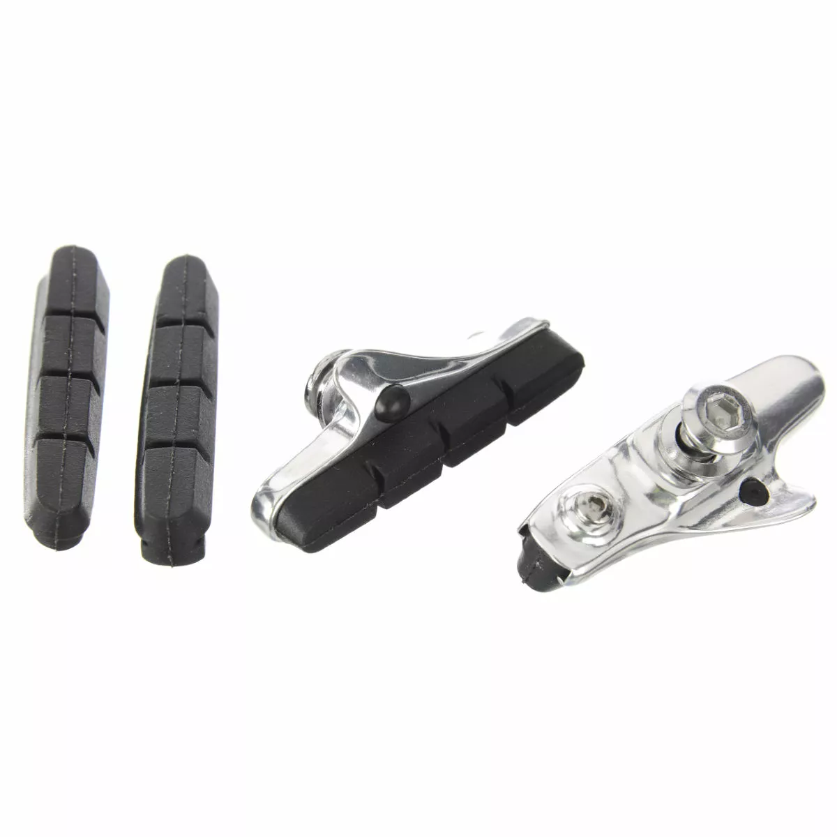 These Clarks 55mm brake shoes come with rubber pads installed and are suitable for use with aluminium and all metallic type rims.