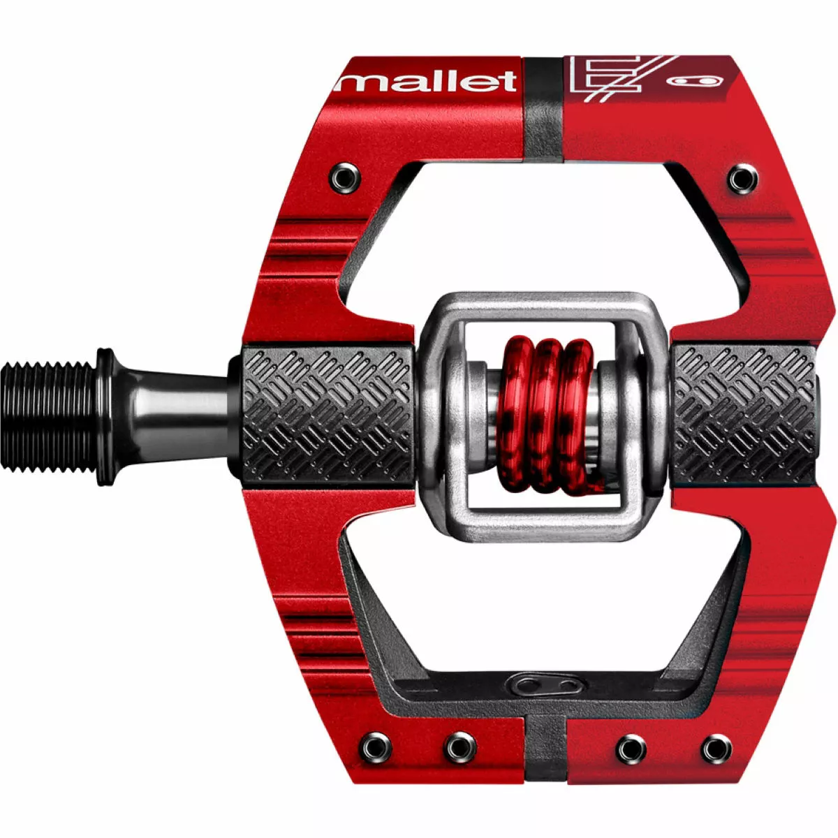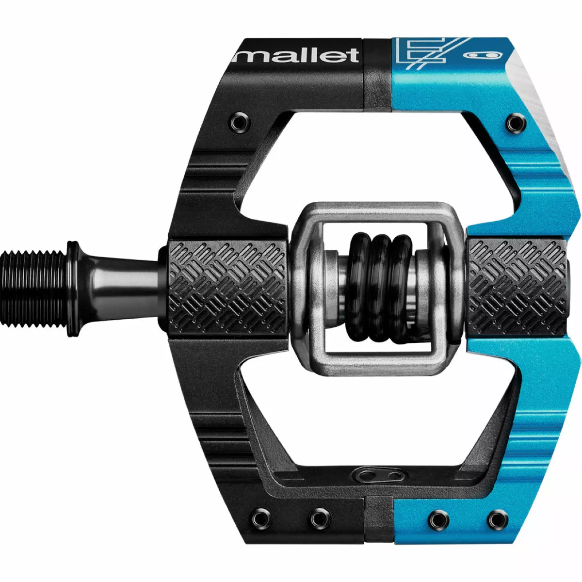 The concave pedal platform offers a more secure foothold. Like its downhill (DH) equivalent you get that flat pedal feel whilst running clipless. 49g lighter and 12% smaller pedal body than the Mallet DH pedal with a 52mm Q-Factor compared to 57mm on the DH equivalent. The ribbed body on these crankbrothers Mallet E LS mountain bike (MTB) pedals allows for better traction when unclipped whilst chamfered edges allow a reduction in rock strikes. The open design also provides excellent mud shedding. 4-sided entry: clip in on all 4 sides of the pedal, by pushing forward or pulling backwards on the pedal.
