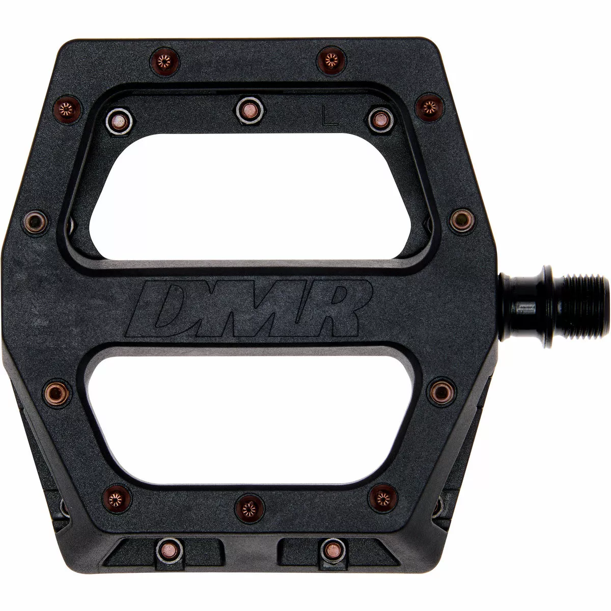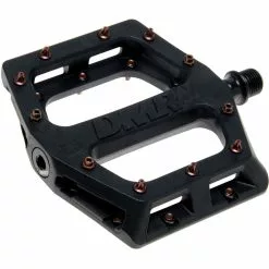 Engineered for the demands of modern MTB trail riding, these exclusive pedals feature a sturdy nylon composite platform construction for excellent strength and reliability. DMR has also equipped these with 4140 hardened chromoly (CrMo) steel axles for additional toughness as you power your way across rough terrain conditions at speed. With amazing grip and tuneable black/copper steel pins, these flat MTB pedals are ready for wherever your next trail adventure takes you.