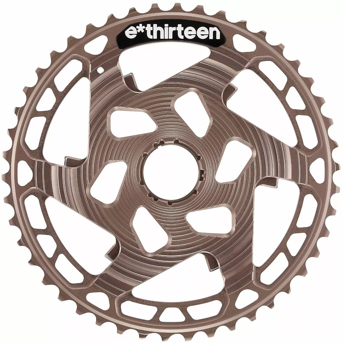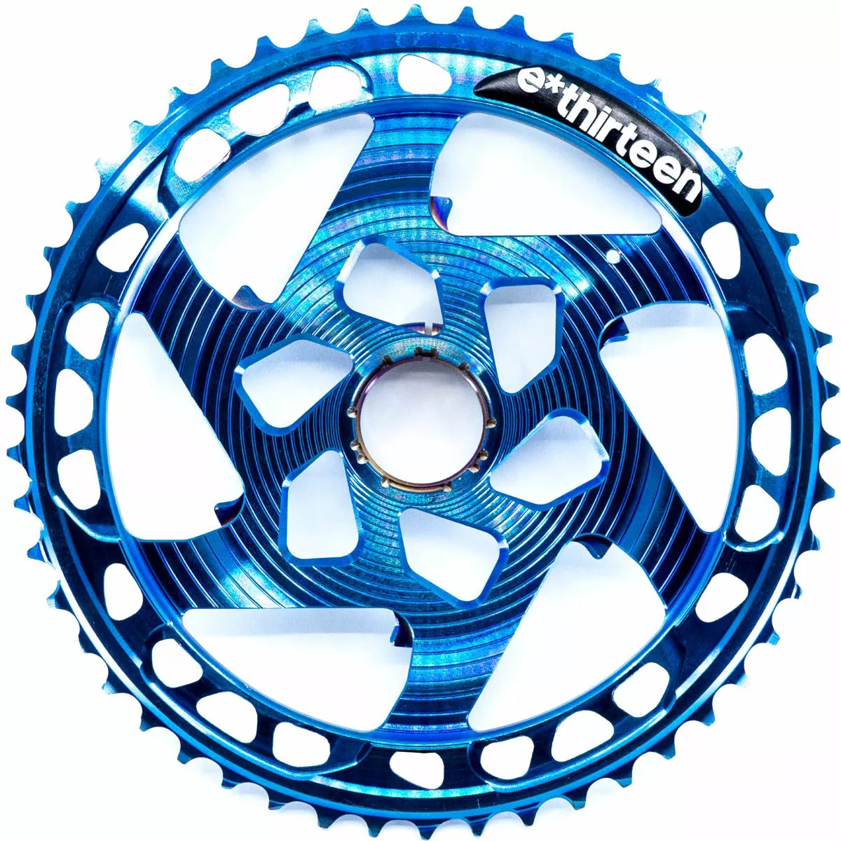The E Thirteen Helix 11 speed cassette is an upgrade to any SRAM or Shimano drivetrain, with more range than any other cassette on the market. The 9 tooth cog lets you step down one chainring size while keeping the same top-end gearing and provides not only better ground clearance but an overall lighter drivetrain.