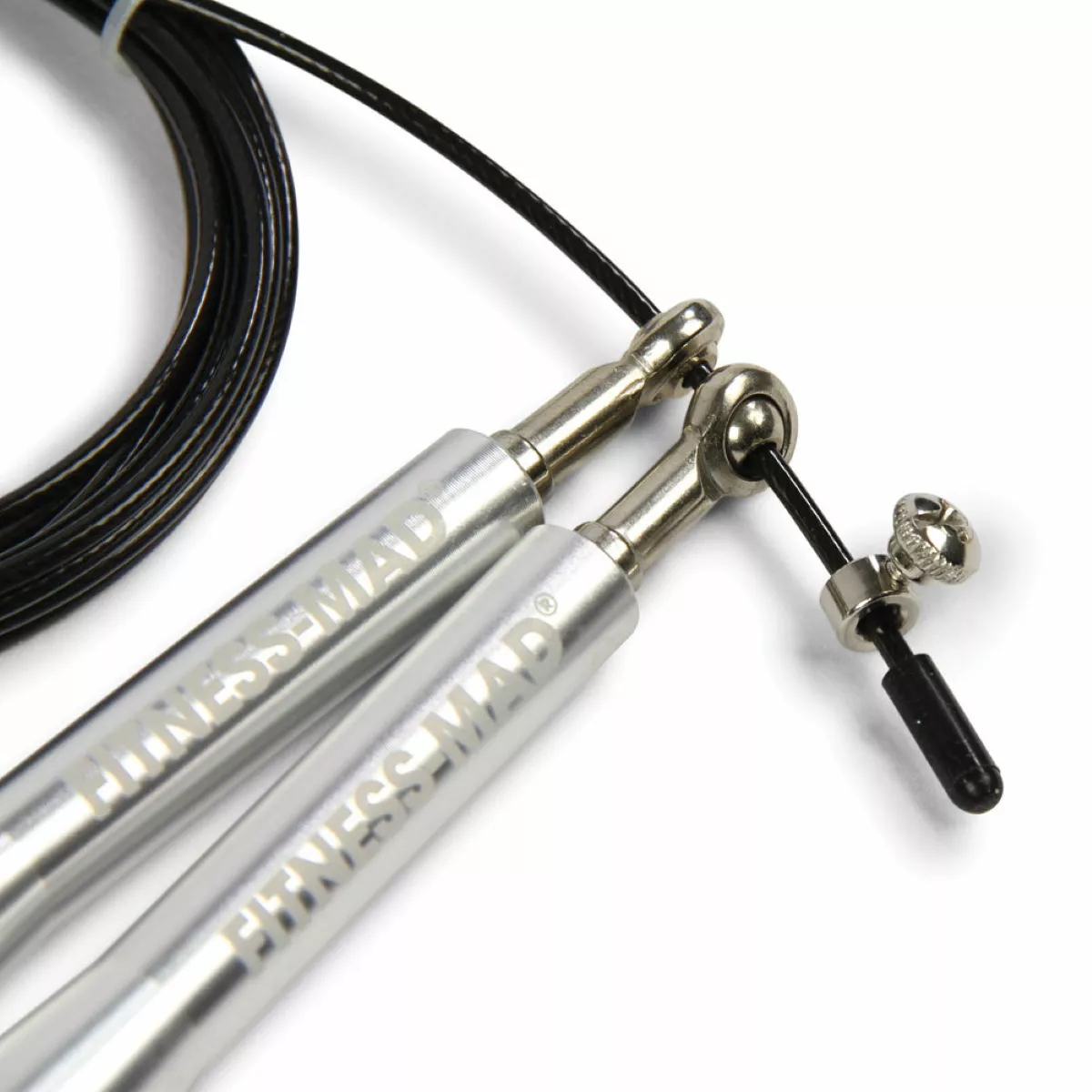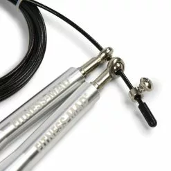 The Ultra Speed Rope is constructed from aluminium handles and a PVC coated steel rope with a steel screw adjustment system. The handles have a special knurling pattern that improves grip and prevents the handles from sliding around when your hands are sweaty. The skipping rope is ideal for CrossFit, Double Unders, HIIT, Cardio, MMA, Boxing training and more.