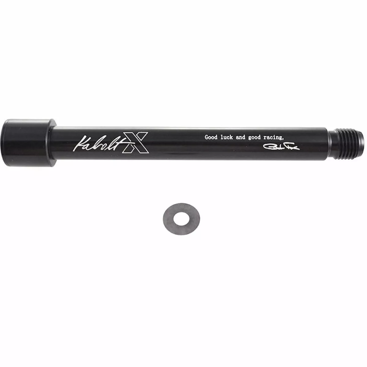 This pinch-axle assembly service set includes a 15x110mm axle and a washer for 2021 Fox 36/38 forks. It can be installed using a 6mm hex Allen key (not included).