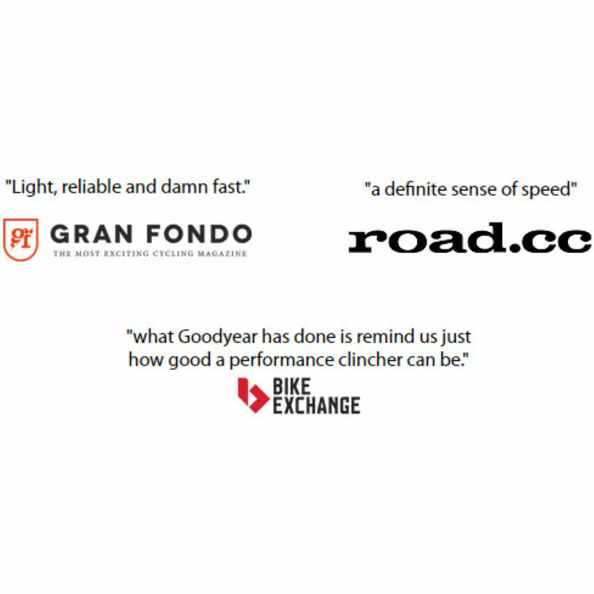 Whether you’re training or competing, this road bike tyre is engineered for maximum performance. Goodyear has equipped this model with R:Shield puncture protection technology, which allows you to benefit from improved puncture protection under the tread while maintaining excellent overall performance. Coming kitted out with dual integrated tread zones, this version keeps your driving and braking forces aligned to deliver controlled cornering grip. One final highlight is its class-leading lightweight design that provides a lower rotating weight for faster acceleration, lower rolling resistance and a superior ride.