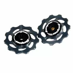 CNC machined from a solid billet of T6 spec 2014 aluminium alloy Lightweight yet robust design Stainless steel sealed roller bearings with low contact seals for reduced drag Labyrinth style spacers encapsulating help protect the bearings and increase product life and reduc Compatible with 9, 10 & 11 speed chains Not Compatible with 2 pin locations Mounting bolts not included (as these bolts are specific to your rear derailleur) Commuter: Yes Touring: Yes Cyclocross: Yes Time Trial: Yes Road: Yes MTB: Yes