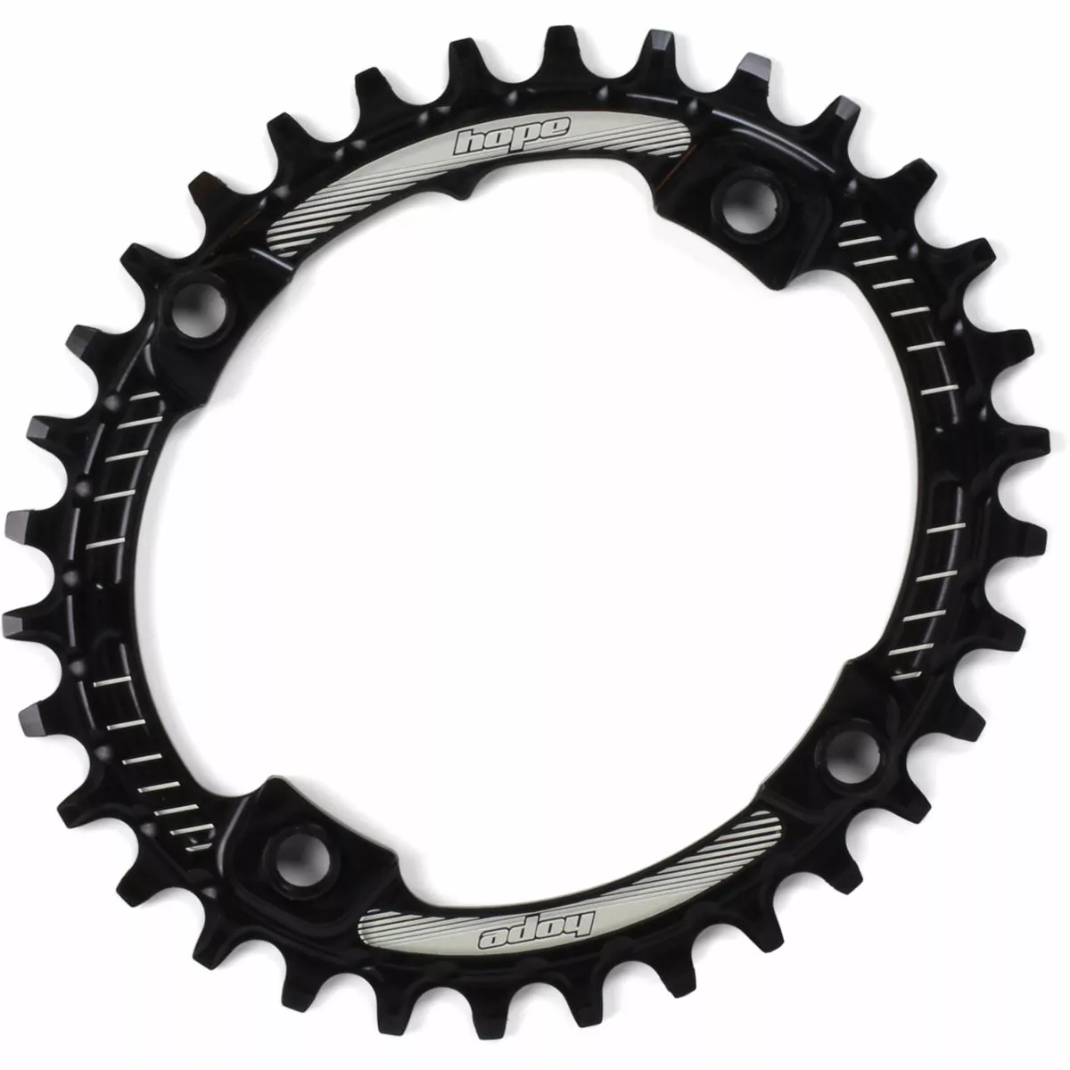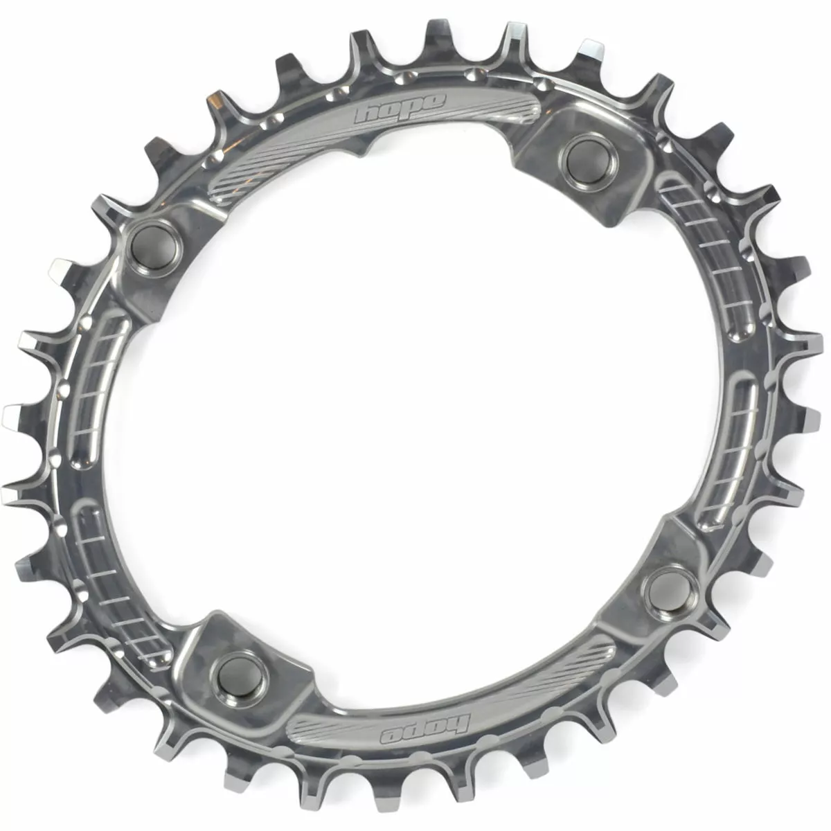 The narrow/wide chainring is designed to retain the chain without the need of a chain device.