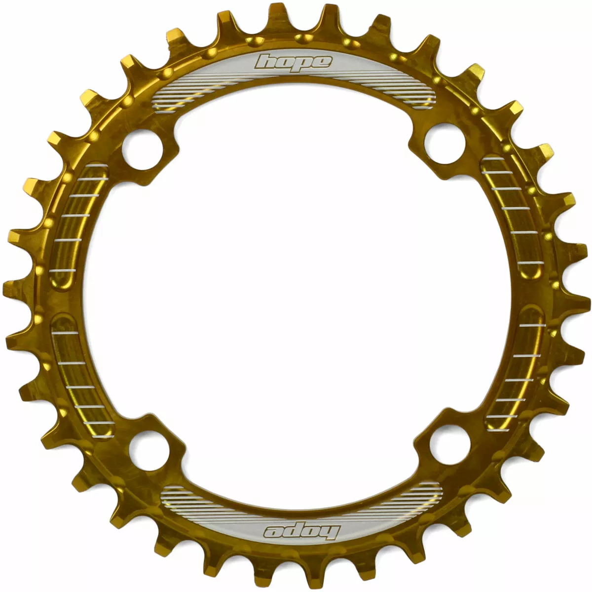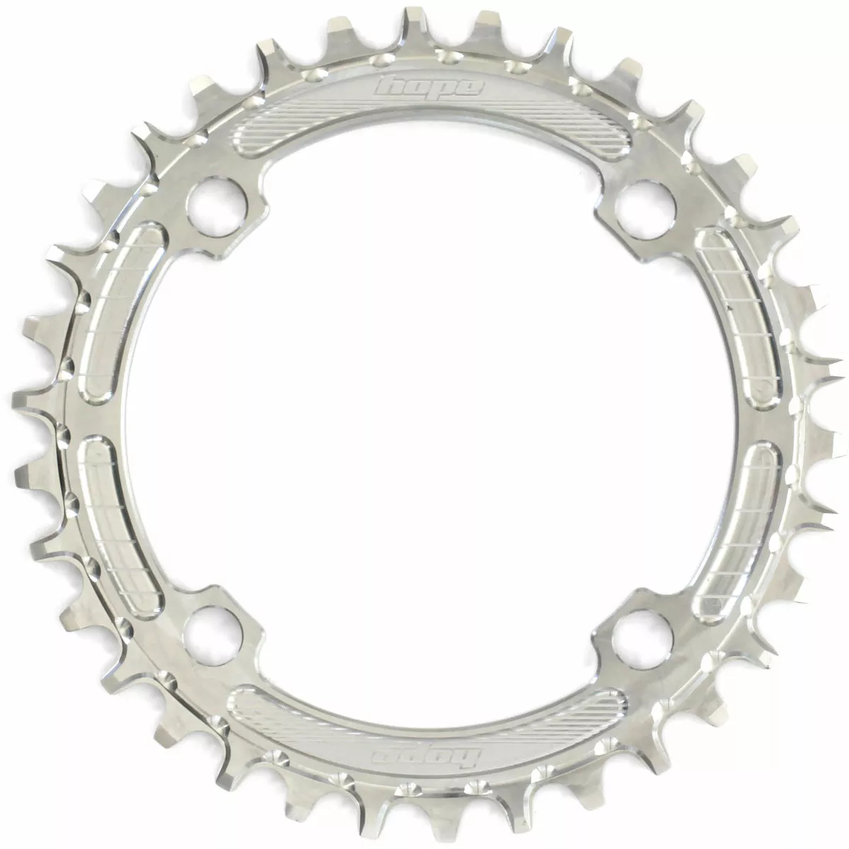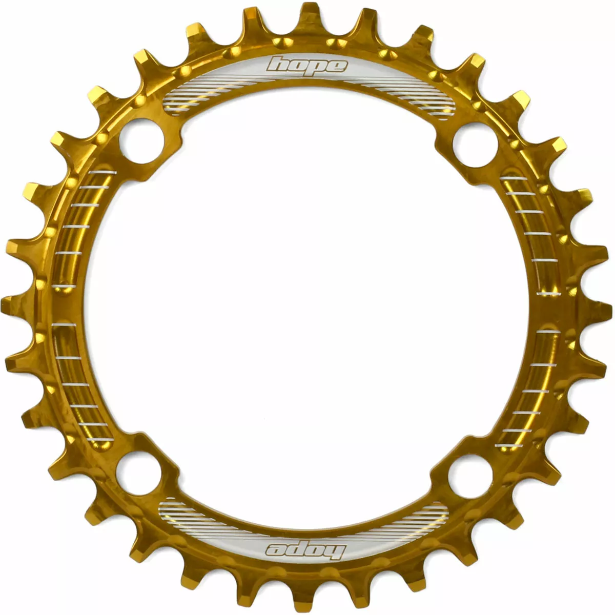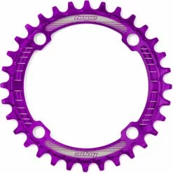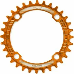 CNC machined in Barnoldswick, England 7075-T6 aluminium Available in Black, Silver or Gold. Available as a 30t,32t, 34t and 36t Chainring size Bolt Circle Diameter (BCD): Separate 4x96mm and 4x104mm options No need to run a chain device Designed to work with conventional 9, 10 or 11-speed setups Weight from 41g Speed: 9/10/11 Speed MTB: Yes