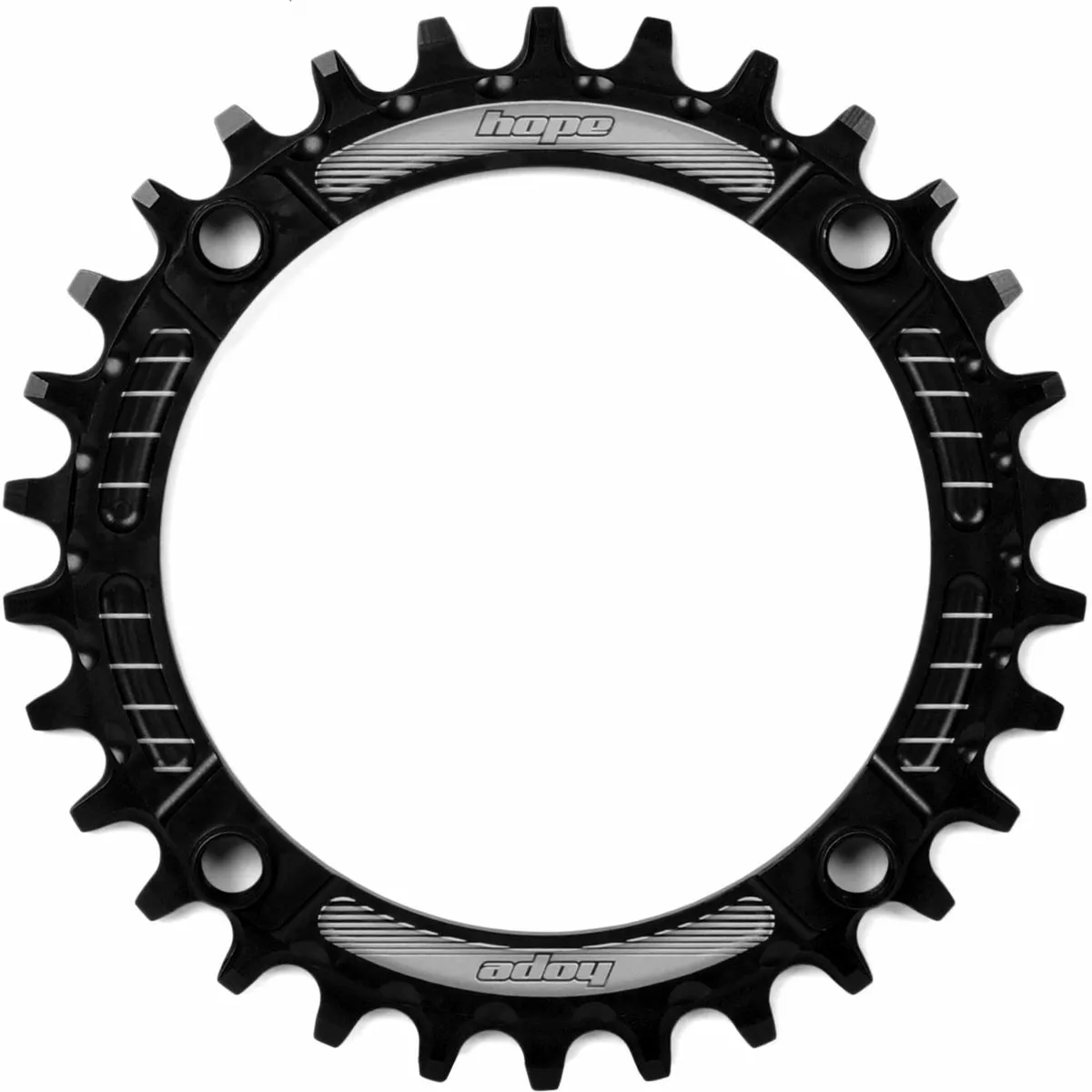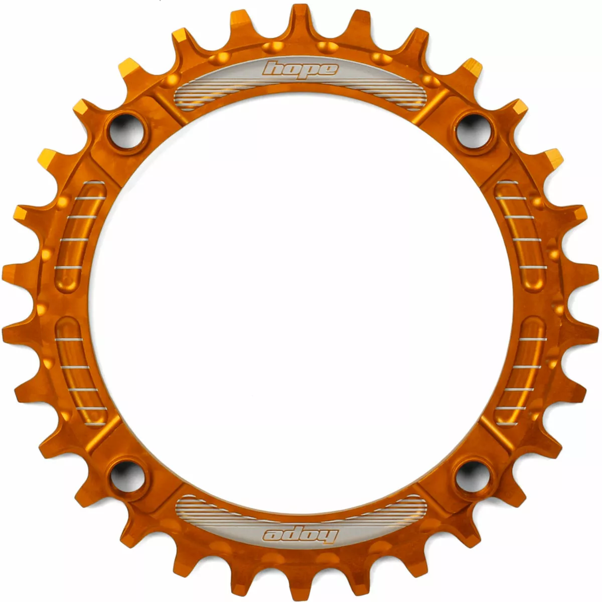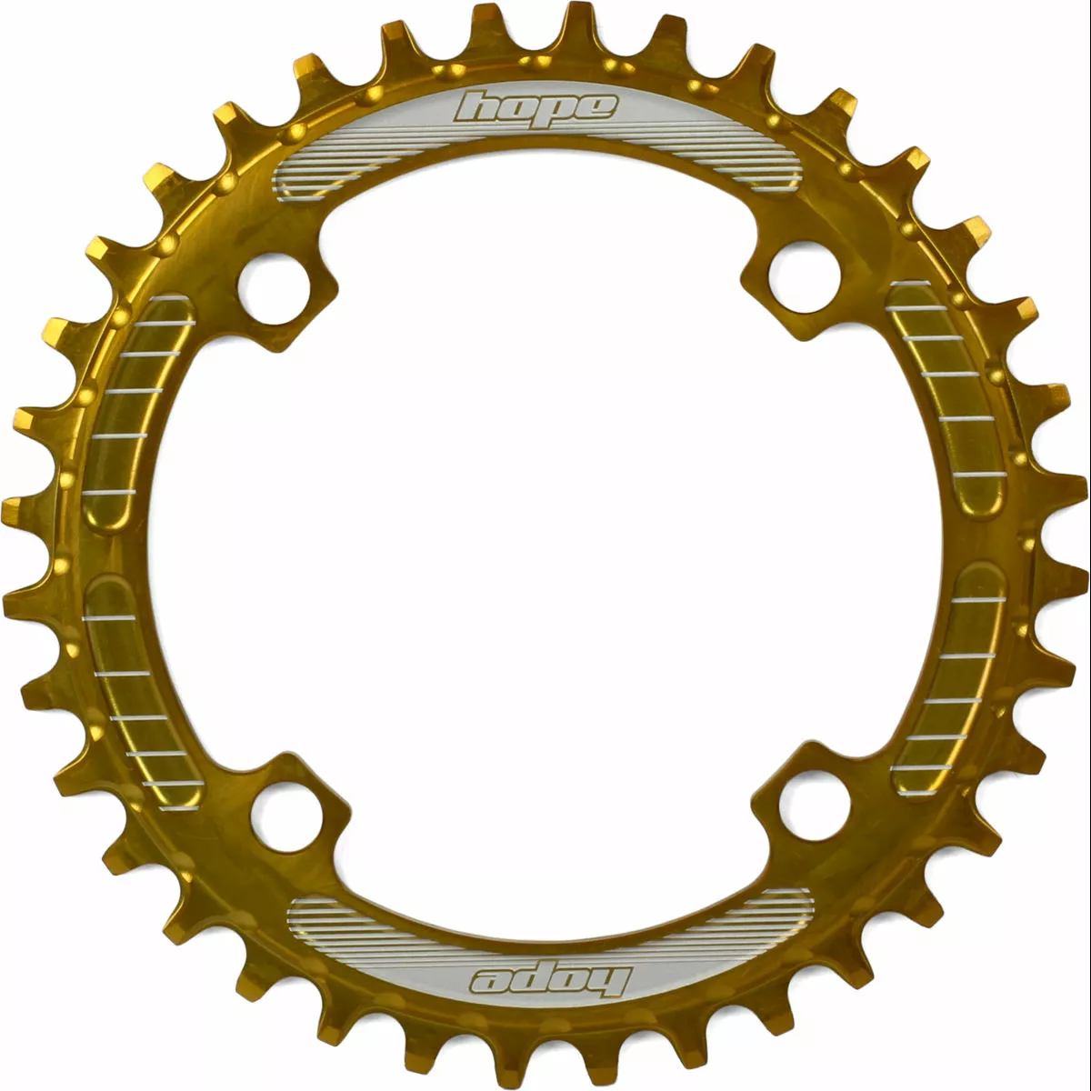 CNC machined in Barnoldswick, England 7075-T6 aluminium Available in Black, Silver or Gold. Available as a 30t,32t, 34t and 36t Chainring size Bolt Circle Diameter (BCD): Separate 4x96mm and 4x104mm options No need to run a chain device Designed to work with conventional 9, 10 or 11-speed setups Weight from 41g Speed: 9/10/11 Speed MTB: Yes