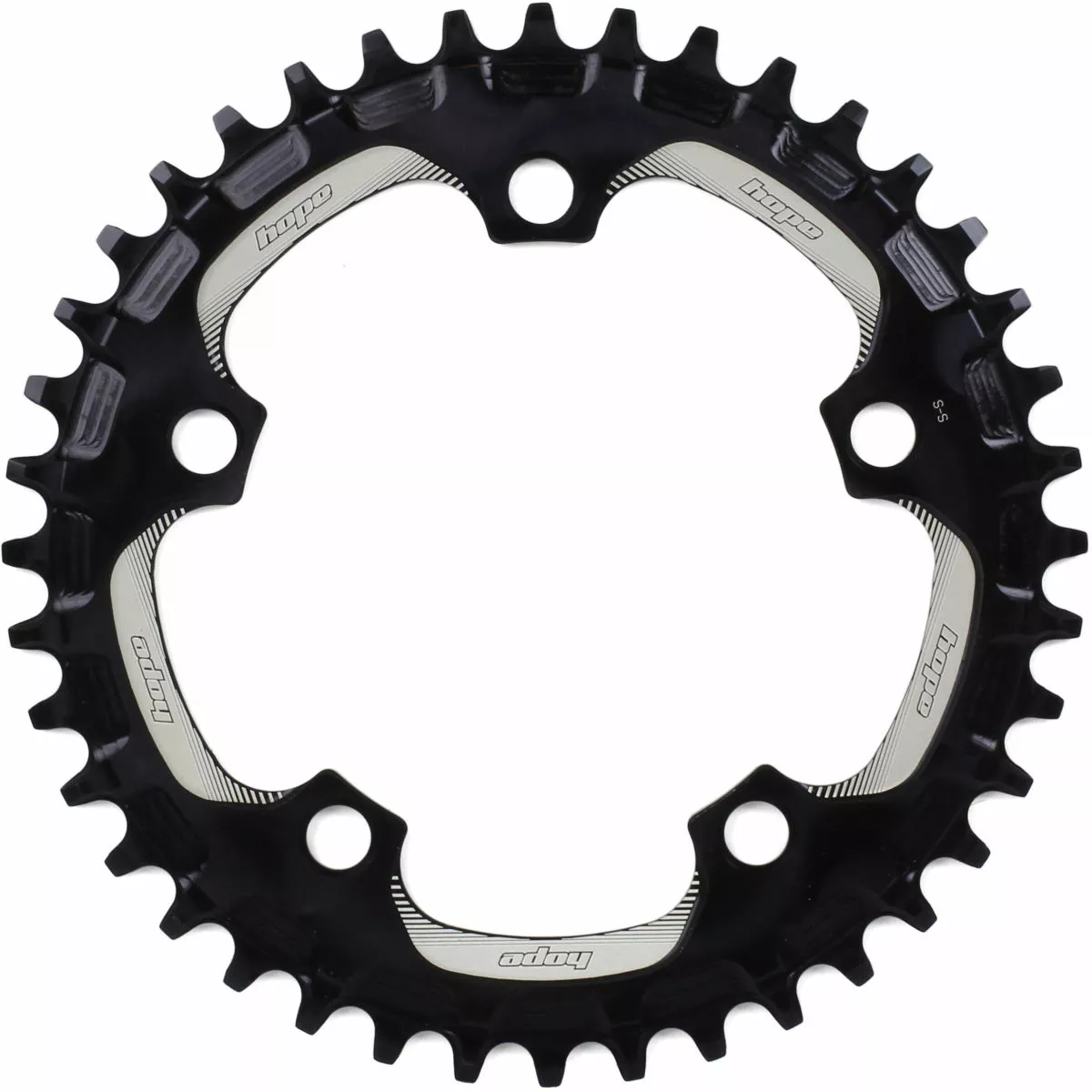 The narrow/wide chainring is designed to retain the chain without the need of a chain device.