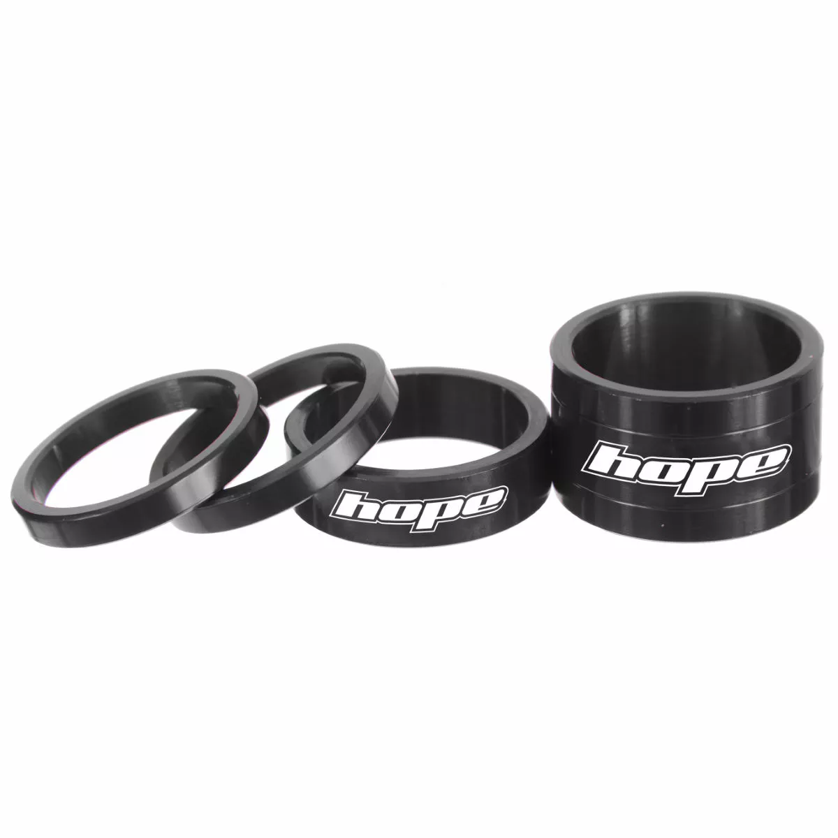 Made from tough and durable 2014 aluminium, the four sizes in the Hope Space Doctor Headset spacers pack include two 5mm, one 10mm and one 20mm size. This enables you to run a low and slammed setup (ideal for road racing or cross country (XC) riding) or a more upright setup (ideal for road endurance, all mountain (AM) or enduro riding). The colouring and finish on these custom machined head spacers complement Hope’s headsets and stems perfectly.