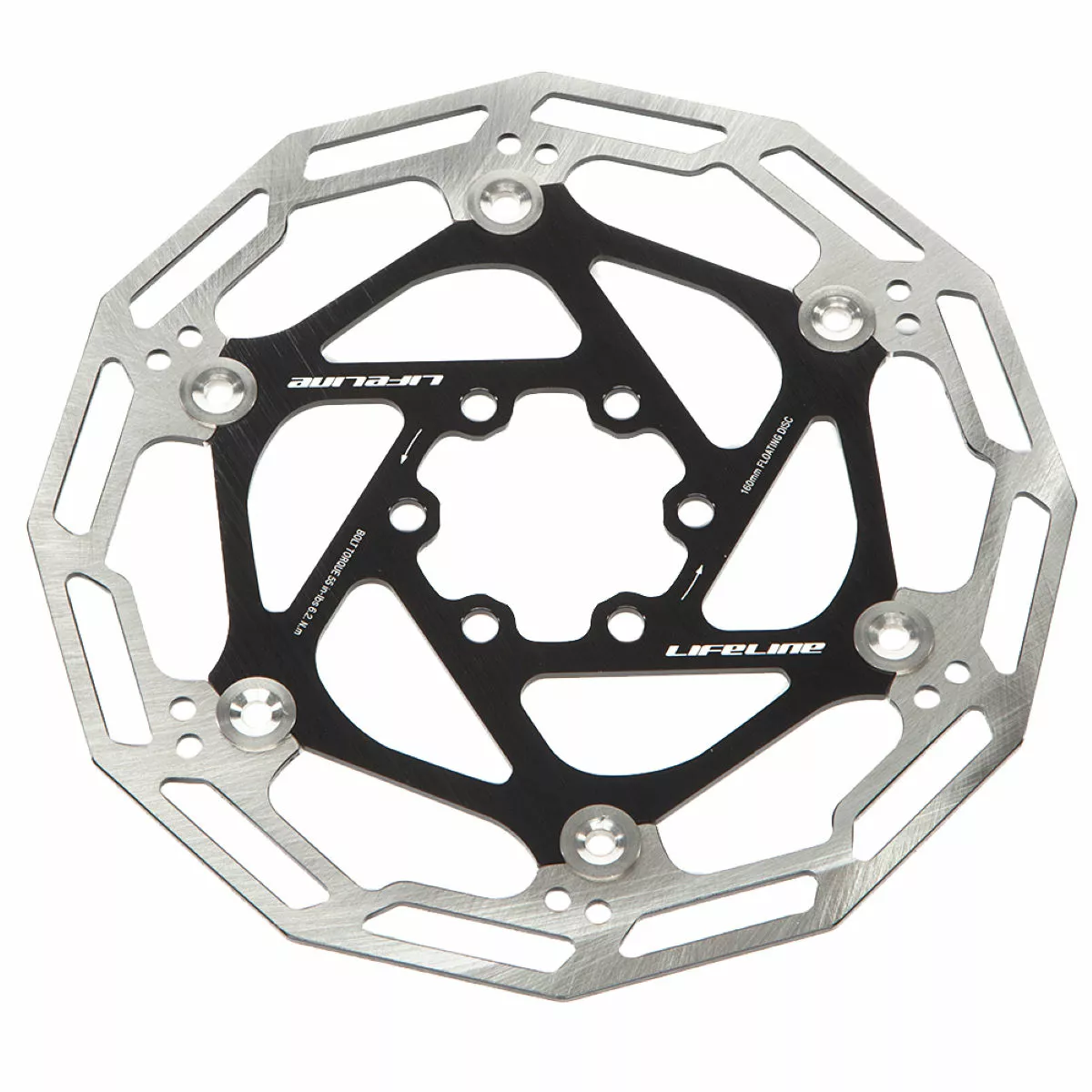 160mm – Suitable for technical XC and all-mountain trail riding Standard 6 bolt ISO mounting Mounting bolts included Lightweight CNC machined 7075 alloy spider Large machined vents for cooling airflow and accelerated heat dissipation Floating design allow the breaking surface to expand under heavy breaking without buckling or cracking Precision double milled braking surface machined from durable 410 high strength stainless steel Corrosion Resistant Resistant to warping and bending Compatible with organic and sintered brake pad types Laser Etched LifeLine Logo 95g (per rotor without mounting bolts) Brake Type: Hydraulic Disc Brake Commuter: Yes Touring: Yes Cyclocross: Yes Time Trial: Yes Road: Yes MTB: Yes