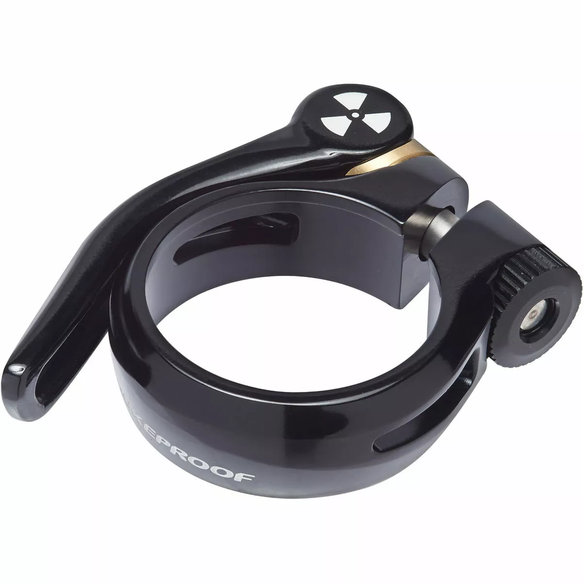 Providing a no-compromise, reliable and lightweight design that’s also aesthetically pleasing, this seat clamp is fully equipped for long days in the saddle. Designed and developed by Nukeproof’s in-house engineers, it features a CNC-machined 6061 aluminium build, which removes all unnecessary material so you can benefit from a super lightweight QR clamp at 42g without compromising strength. Another highlight is its incorporated ergonomic QR lever allows for on-the-fly tool-free saddle height changes.  Â