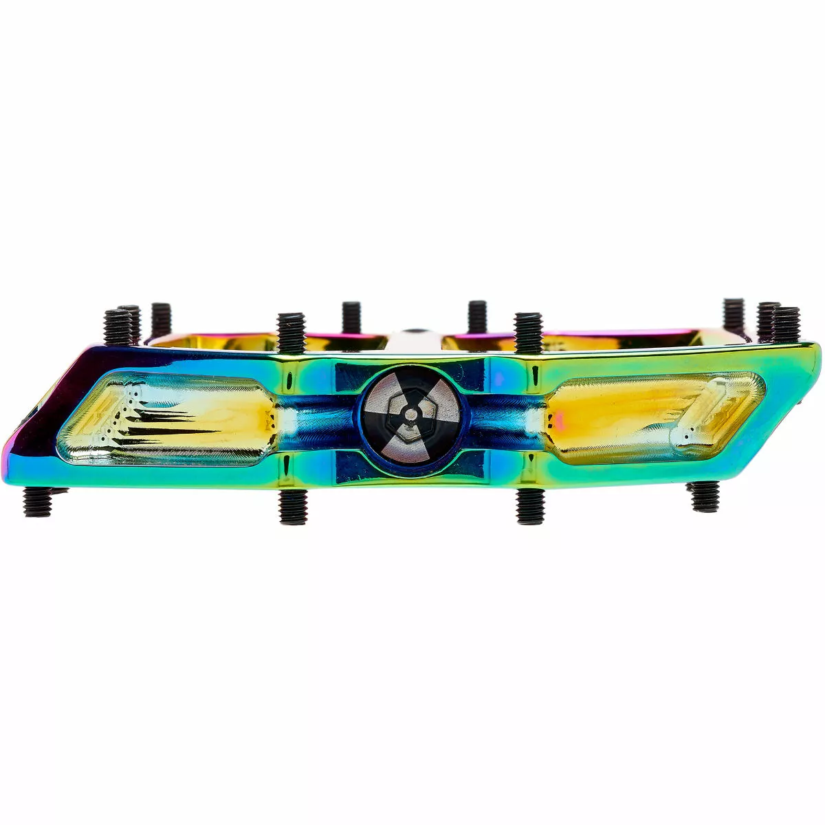 These MTB pedals feature a rock-solid aluminium platform construction, which makes them more than capable of handling all the abuse associated with all-day epics. Nukeproof has also put these through a forging and CNC-machining process, which means you’ll benefit from their amazing durability without adding any unnecessary weight to your hardtail or full suspension ride. These pedals are in Nukeproof’s special edition oil slick colour.