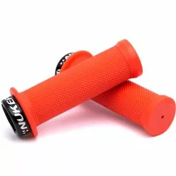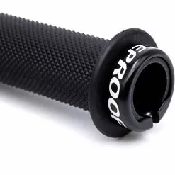 The grips are 115mm long which is the perfect length for small hands and there is a flange on inner clamp for additional comfort and protection. The outer end is soft rubber to protect the rider and also the handlebar in the event of a crash.