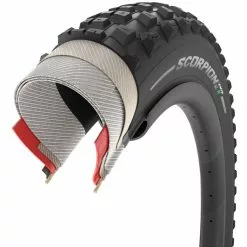 The Scorpion E-MTB R is the perfect rear wheel tyre when paired with a Scorpion E-MTB M on your front wheel (available separately). Its medium profile tread design offers added traction and durability for uncompromised performance over a variety of terrains. With a special tread pattern engineered for traction and braking grip, the Pirelli Scorpion E-MTB Rear Tyre is ideal for trail riding.
