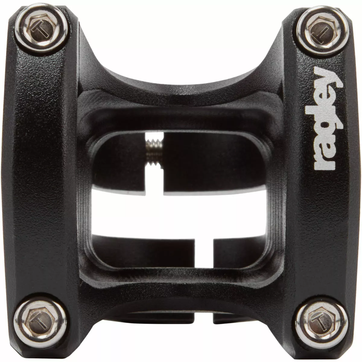 Following on from the success of the original Stubbing stem, Ragley has created this revised V2 model. It looks similar to its predecessor but now features an updated faceplate to give a wider clamping area, plus additional machining to save more weight. This is also combined with Ragley’s ‘Lock-Down’ clamping system, which allows riders to use the two top bolts fully and leave tensioning to the bottom bolts. As a result, it avoids any problems with uneven tensioning across the faceplate and makes for an incredibly stiff front end setup.