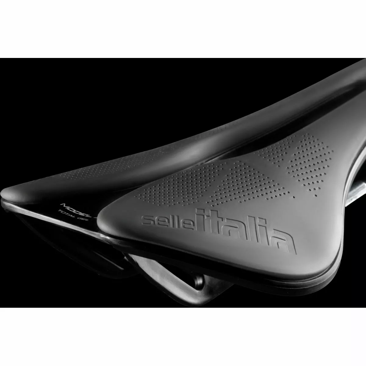 The stand-out technical features of this product include the padding in Total Gel (with integrated antibacterial treatment), which covers the entire surface of the shell, and the waved form, making this saddle perfect for cyclists who love to maintain a more stable position, even during long rides. Moreover, using the idmatch system and precisely thanks to this waved form, this saddle is particularly suited to those with a posterior pelvic tilt.
