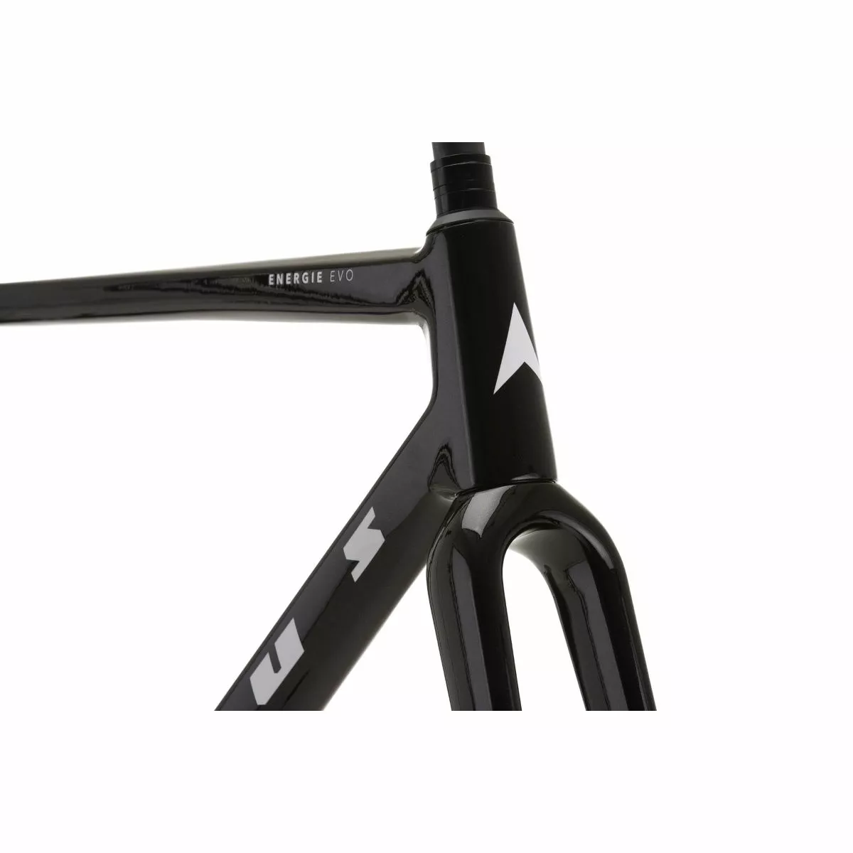 The Energie EVO features a stylish carbon frame and fork with modern geometry and beautiful visuals. This frameset gives you exceptional agility and pedalling efficiency whether you’re gravel racing, trail riding or clocking up the miles on daily commutes. Plus, it features flat mounts for disc brakes, mudguard mounts and 12mm thru-axles front and rear.